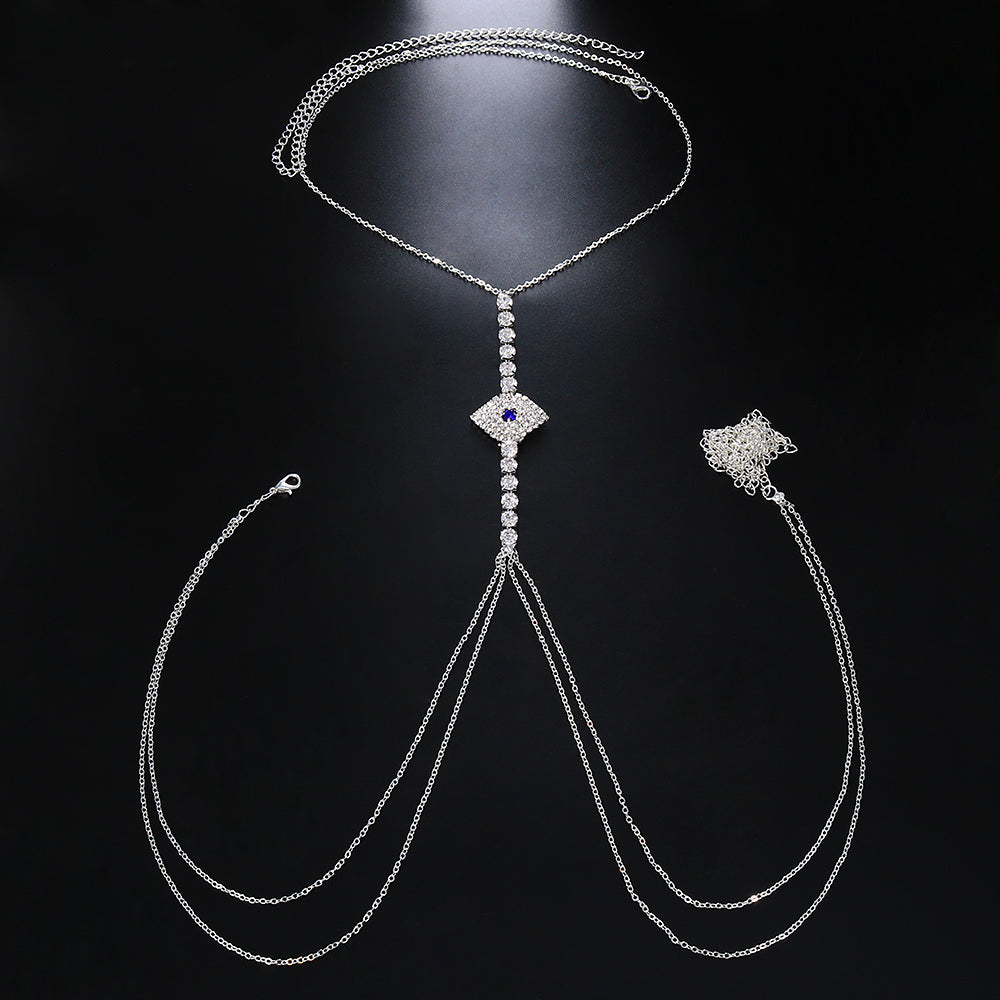 Łańcuszek na klatkę piersiową z cyrkoniami z motywem oka