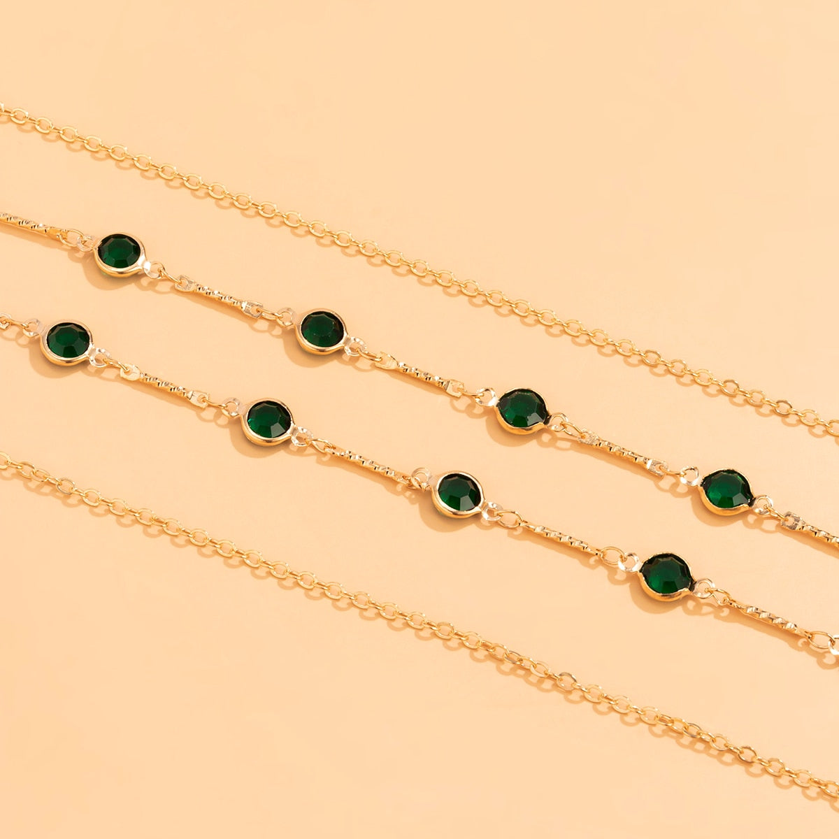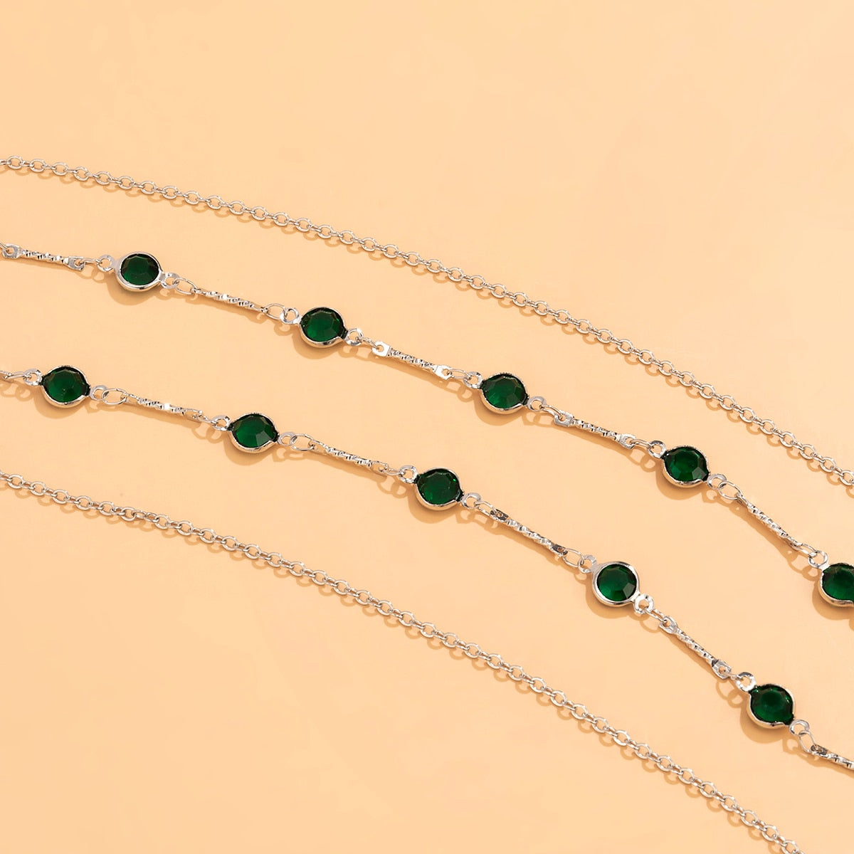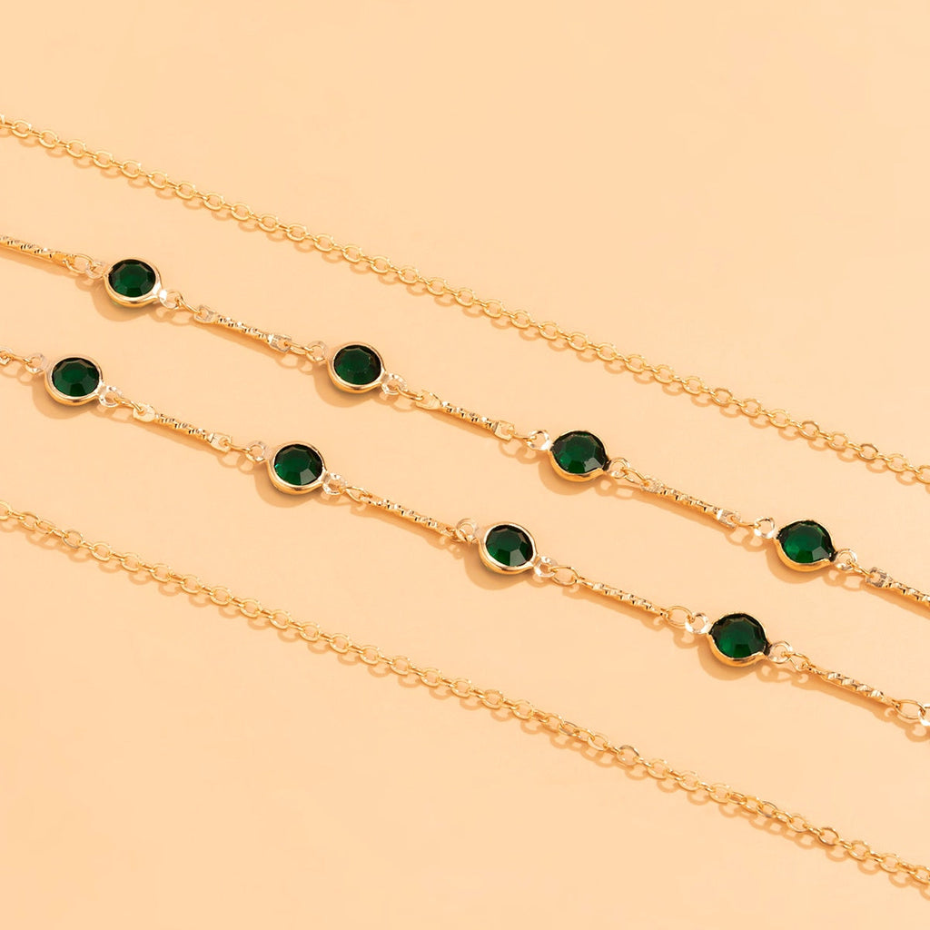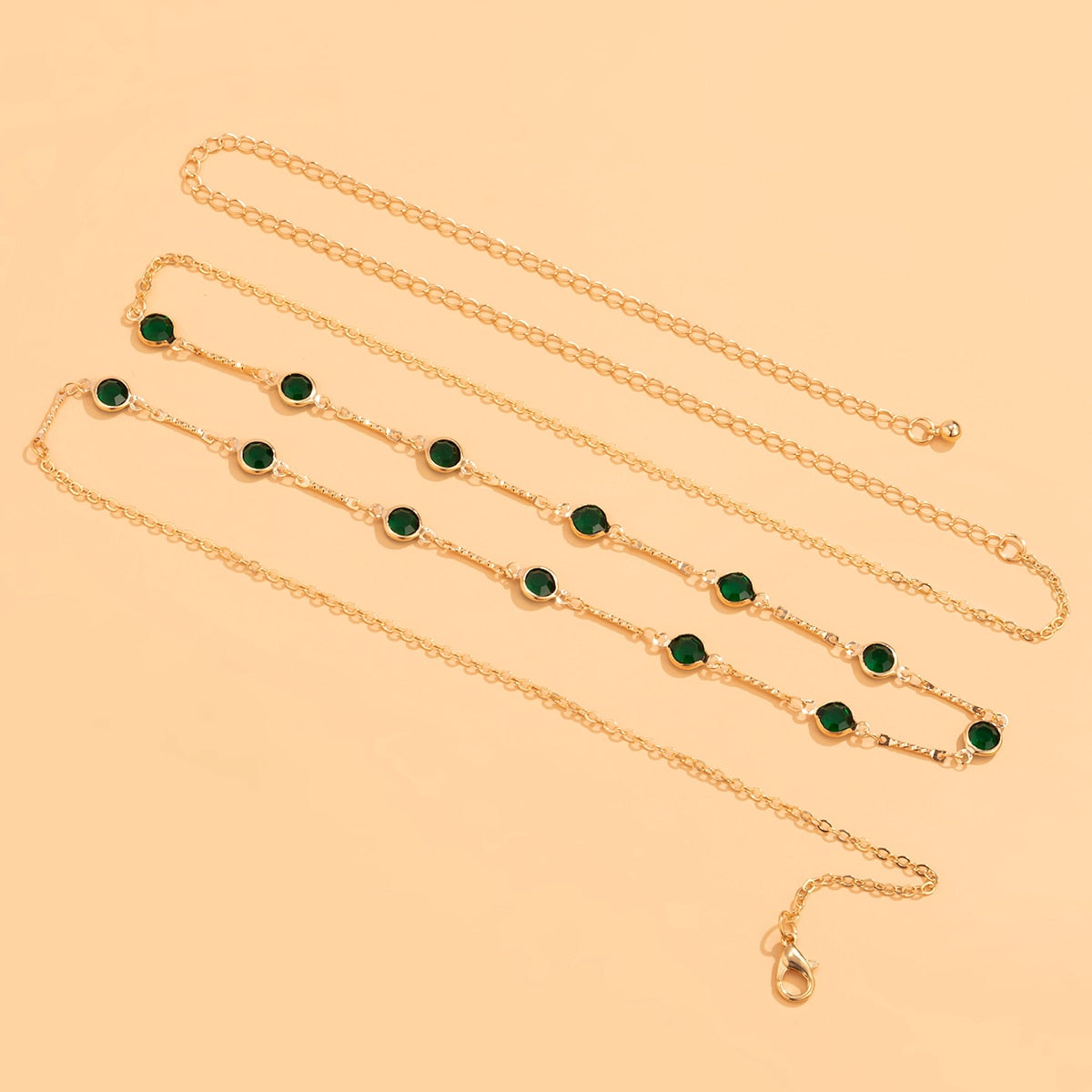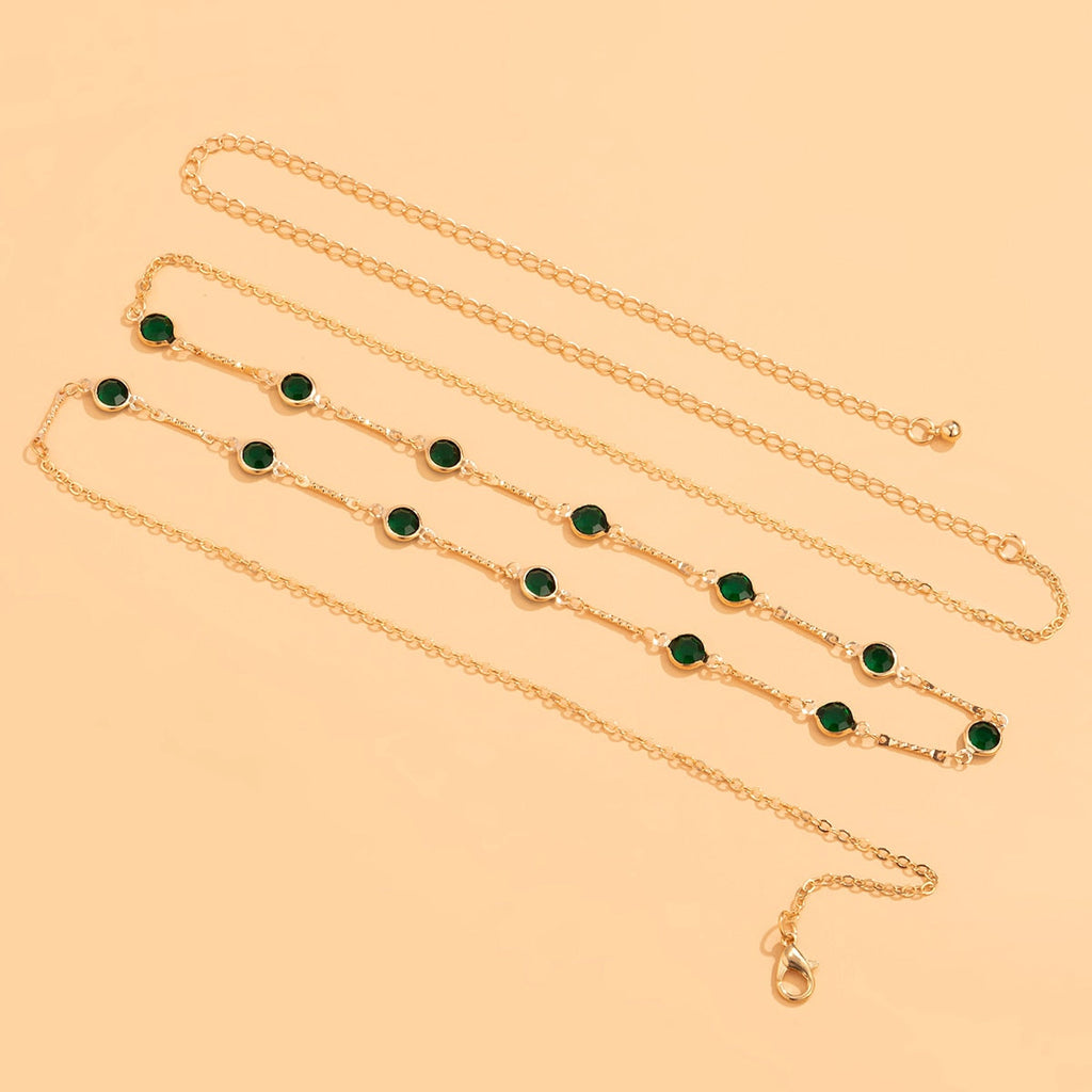 Łańcuszek na talię z zielonymi oczkami