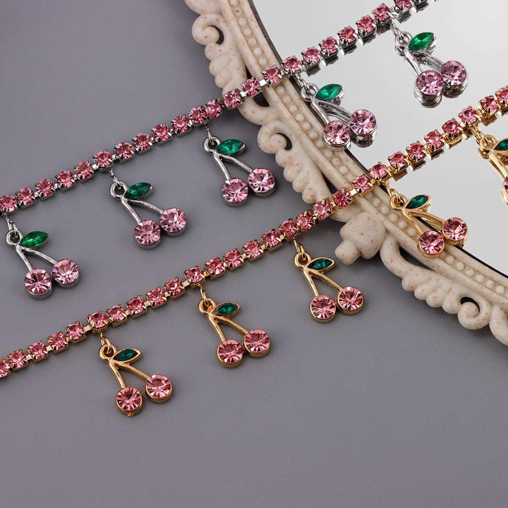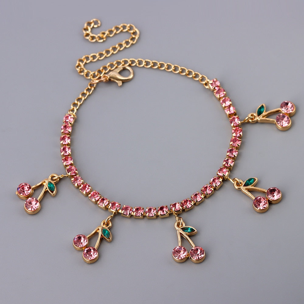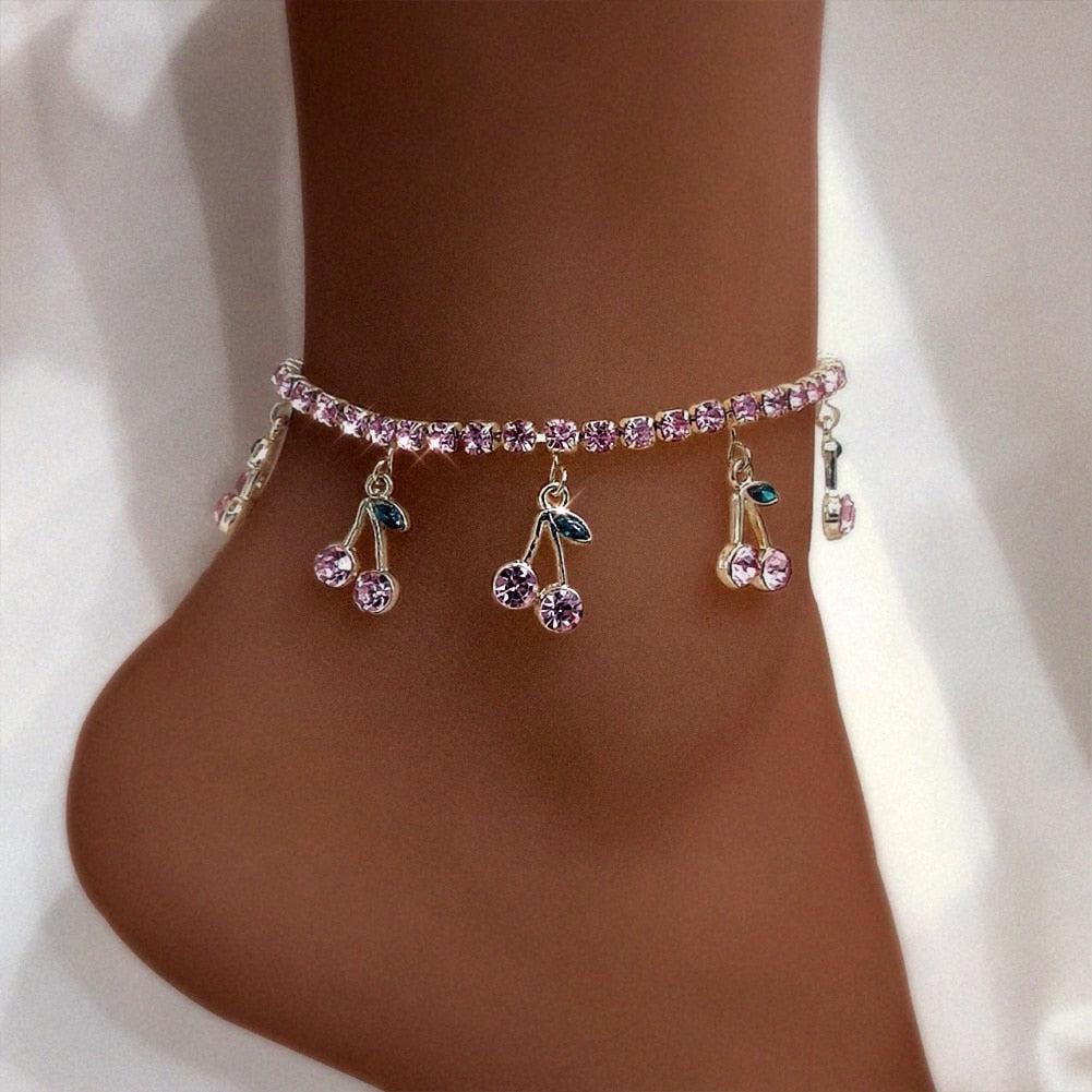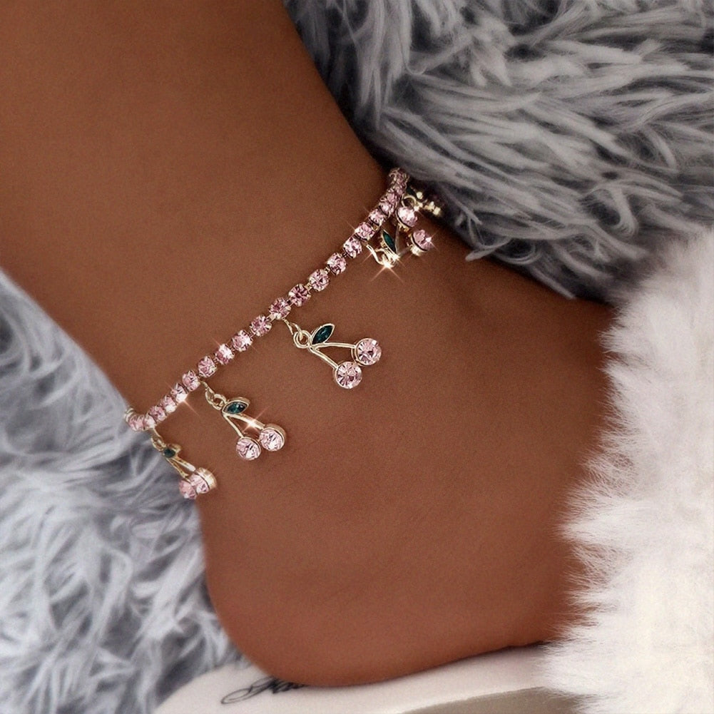 Bransoletka na kostkę z cyrkoniami - wisienki