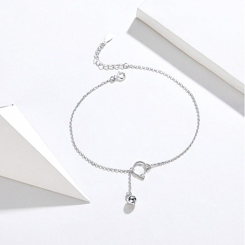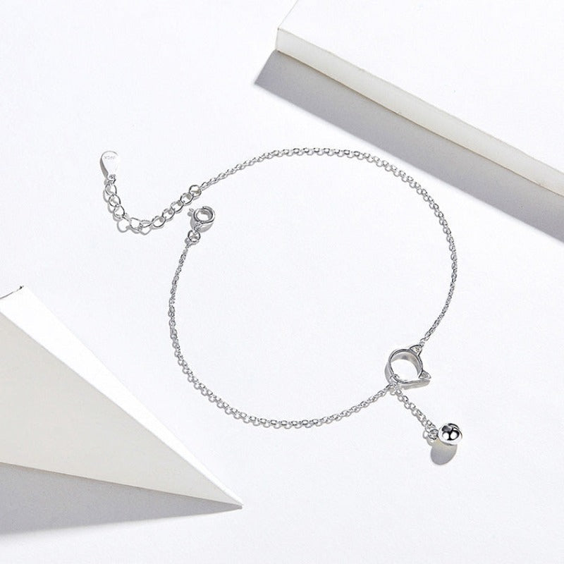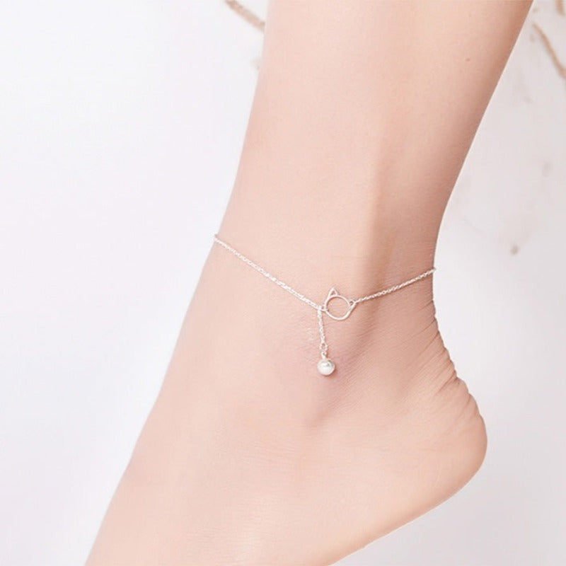 Srebrna bransoletka na kostkę z motywem kotka
