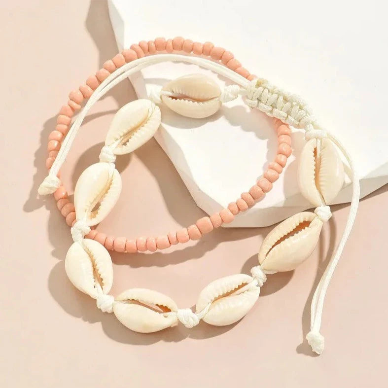 - Bransoletka z koralikami na elastycznej gumce, a z muszelkami na sznurku