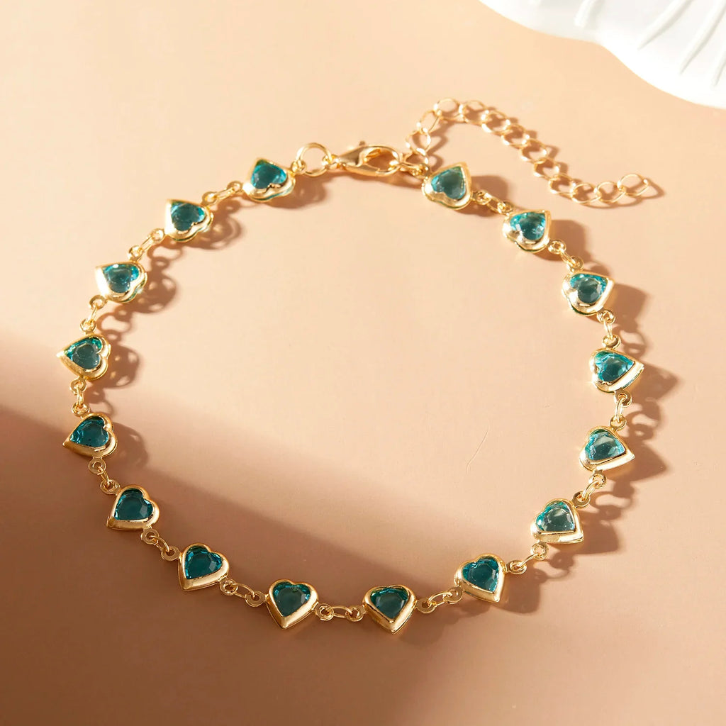 Bransoletka na nogę z kryształkami w kształcie serca