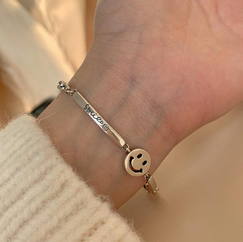 - Bransoletka z uśmiechniętą emotikoną oraz tekstem