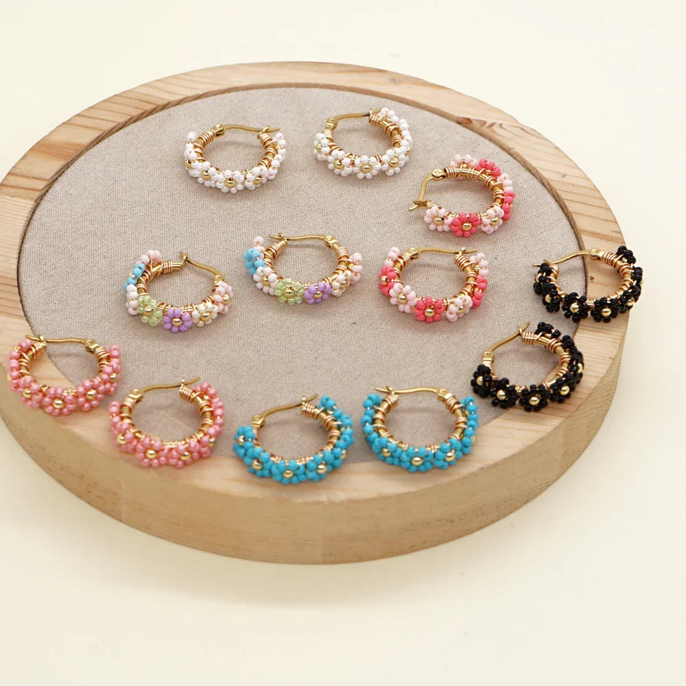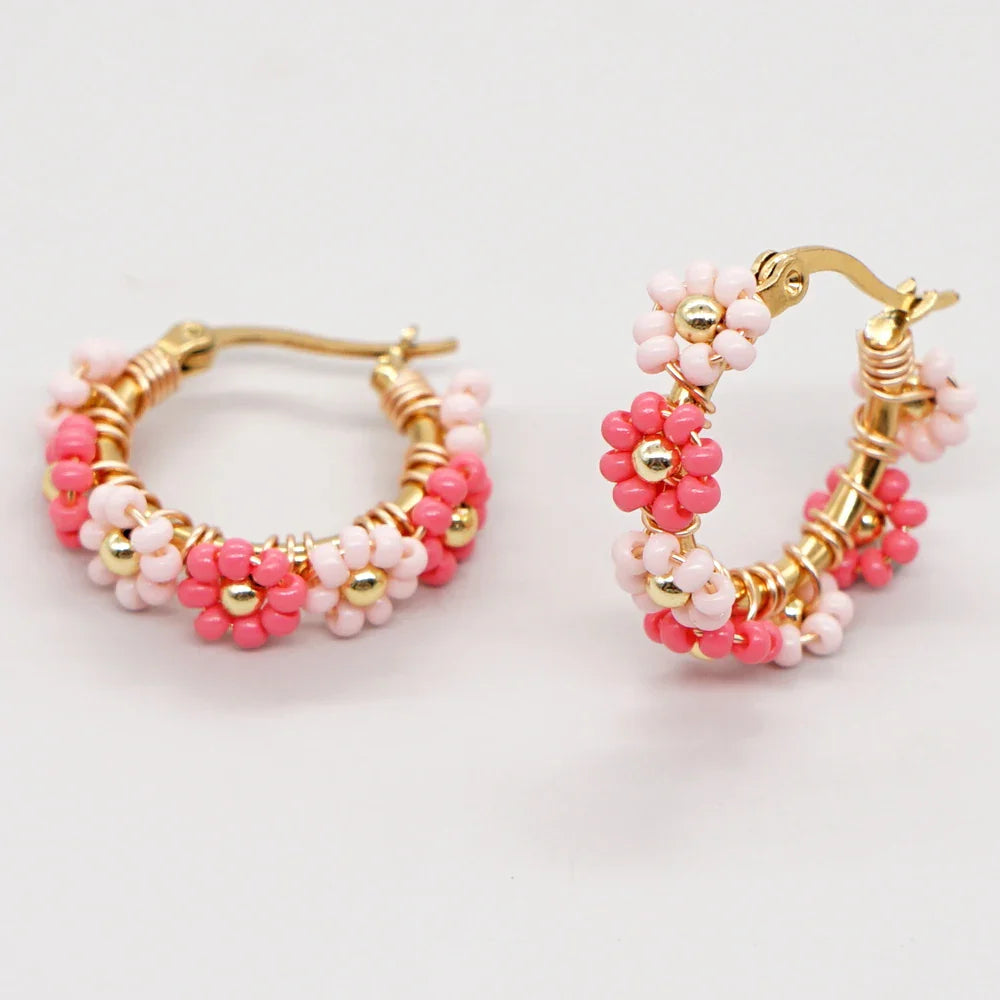 Kolczyki okrągłe z kwiatkami