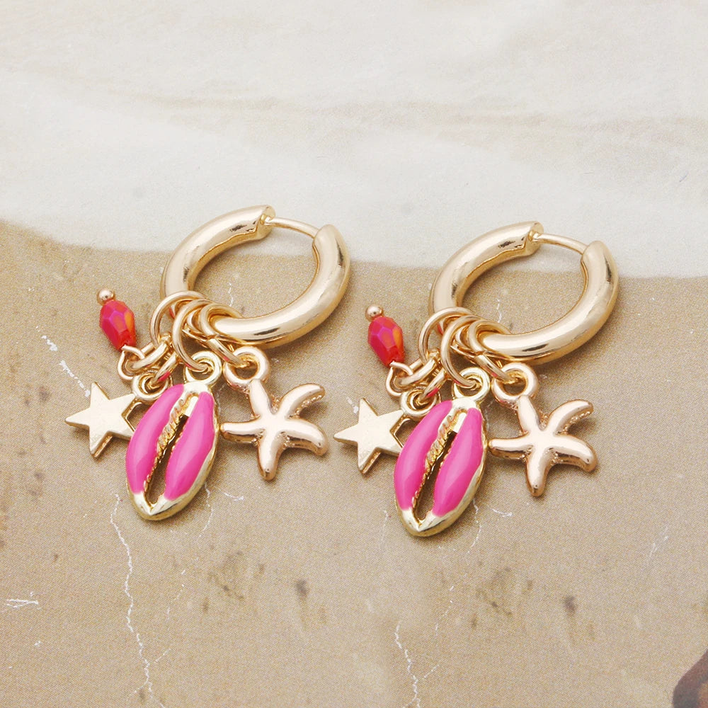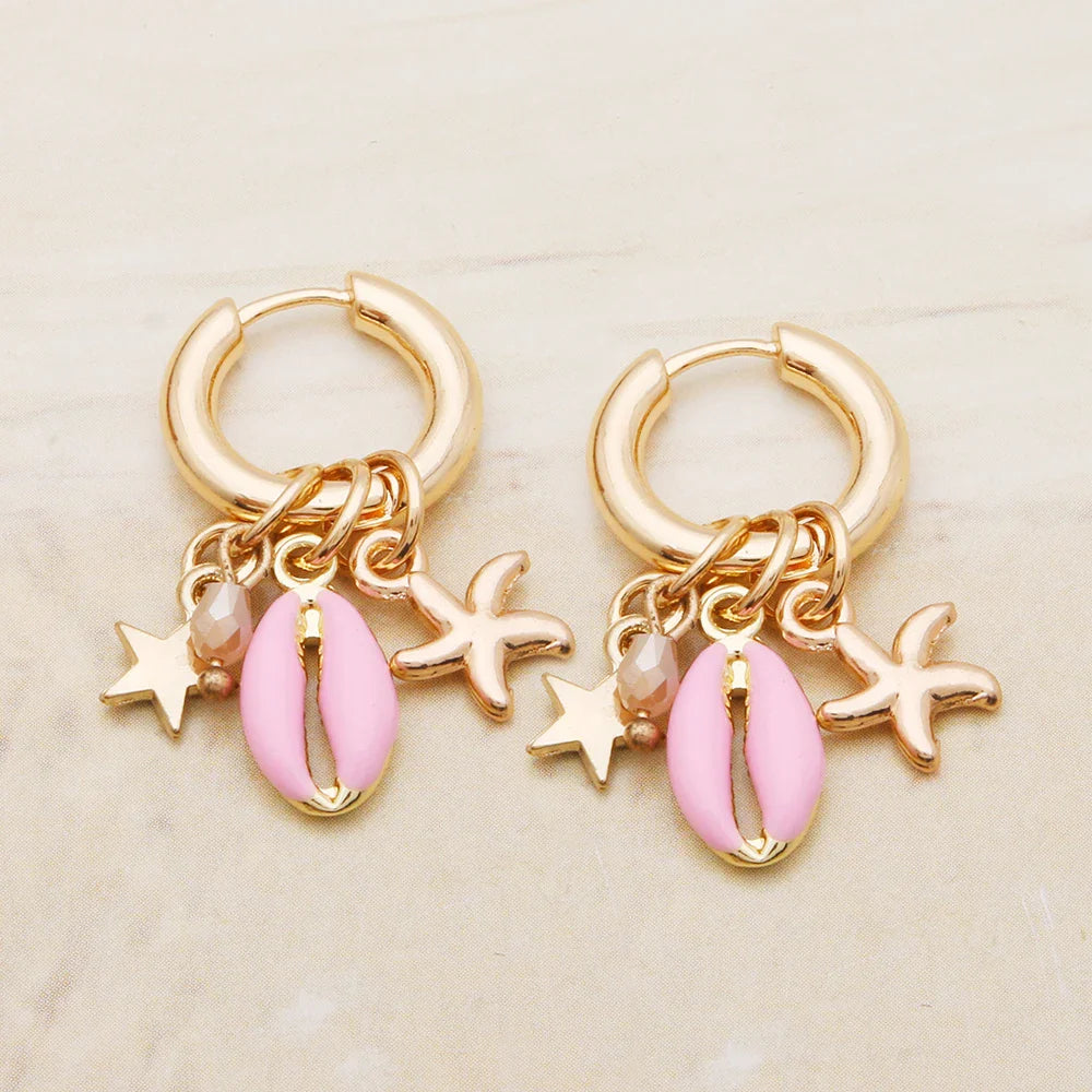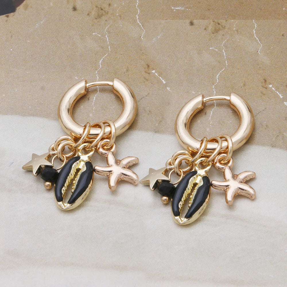 Kolczyki z wiszącą muszelką i rozgwiazdą