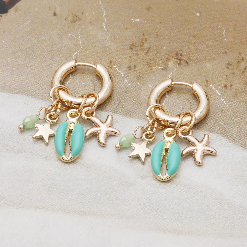 • Kolczyki z zwisającą muszelką oraz rozgwiazdą
