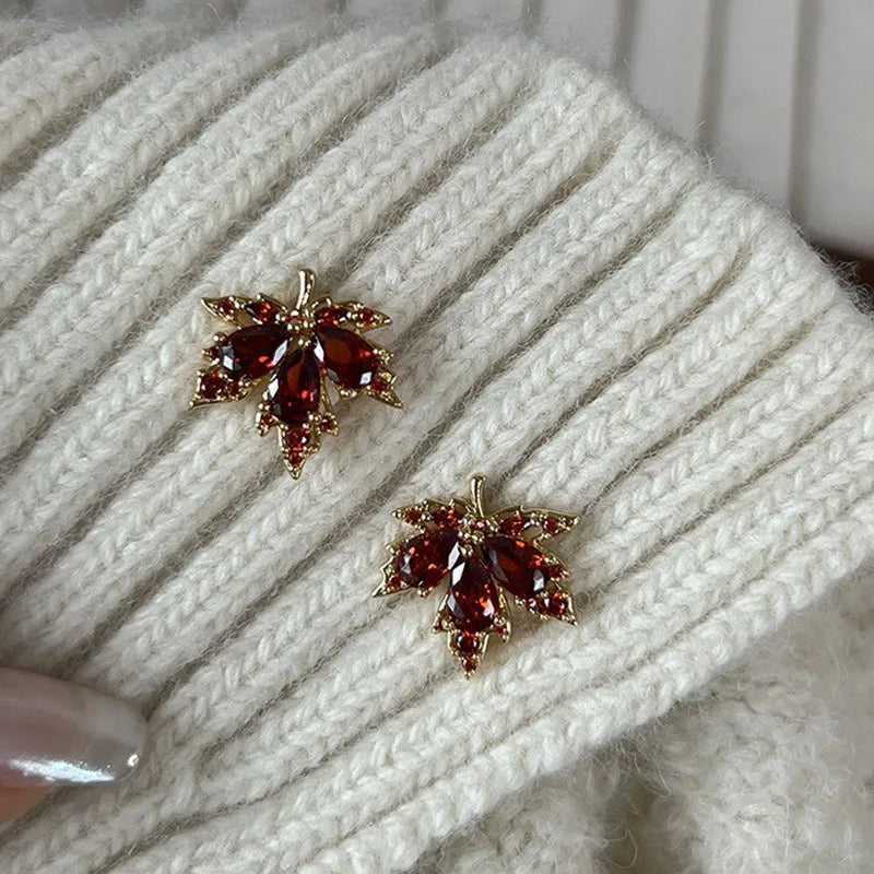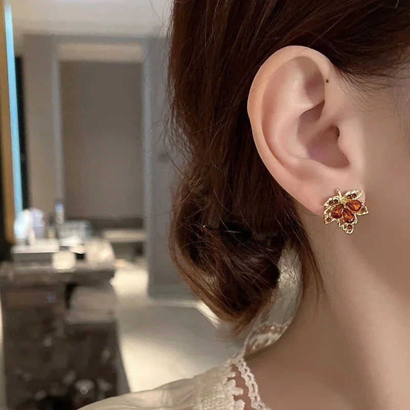 Kryształowe kolczyki jesienny liść