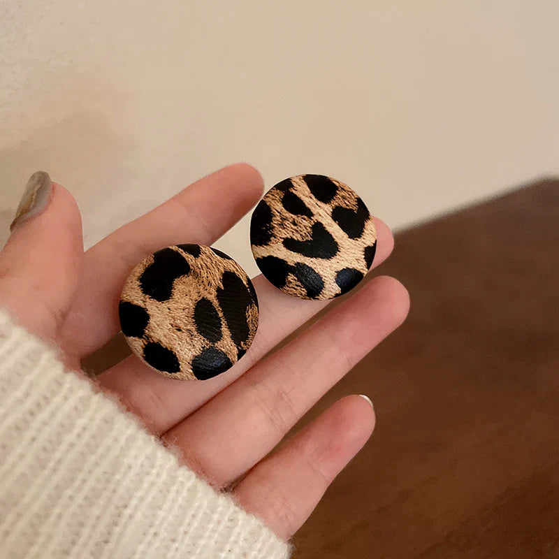 Okrągłe kolczyki z motywem panterki