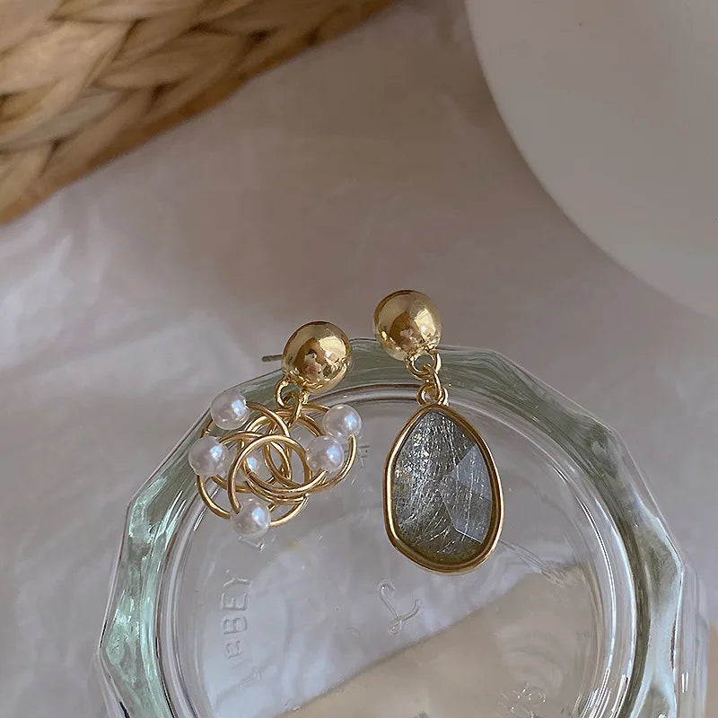 Te wiszące kolczyki o asymetrycznym kształcie to doskonała propozycja dla entuzjastek unikatowej biżuterii. Wykonane w odcieniu złota, charakteryzują się nieregularnymi formami oraz artystycznym wykończeniem, co sprawia, że doskonale wpisują się w aktualne trendy modowe. Jeden z kolczyków zdobi subtelna szara perła, natomiast drugi wyróżnia się eleganckim, organicznym kształtem. Te kolczyki podkreślą Twoją wyjątkowość, wprowadzając do stylizacji nutę francuskiego szyku i elegancji. Sprawdzą się zarówno na co dzień, jak i podczas szczególnych okazji!