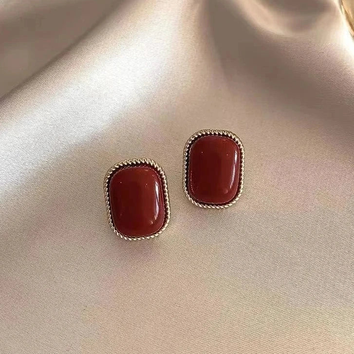 Komplet kolczyków w stylu vintage, składający się z 3 par o wyjątkowych kształtach. Każda para utrzymana jest w eleganckim odcieniu czerwonego wina, który podkreśla retro charakter z elementami francuskiej finezji. Kolczyki na sztyftach są idealnym wyborem zarówno na co dzień, jak i na specjalne okazje, nadając wyrafinowany akcent każdej stylizacji.