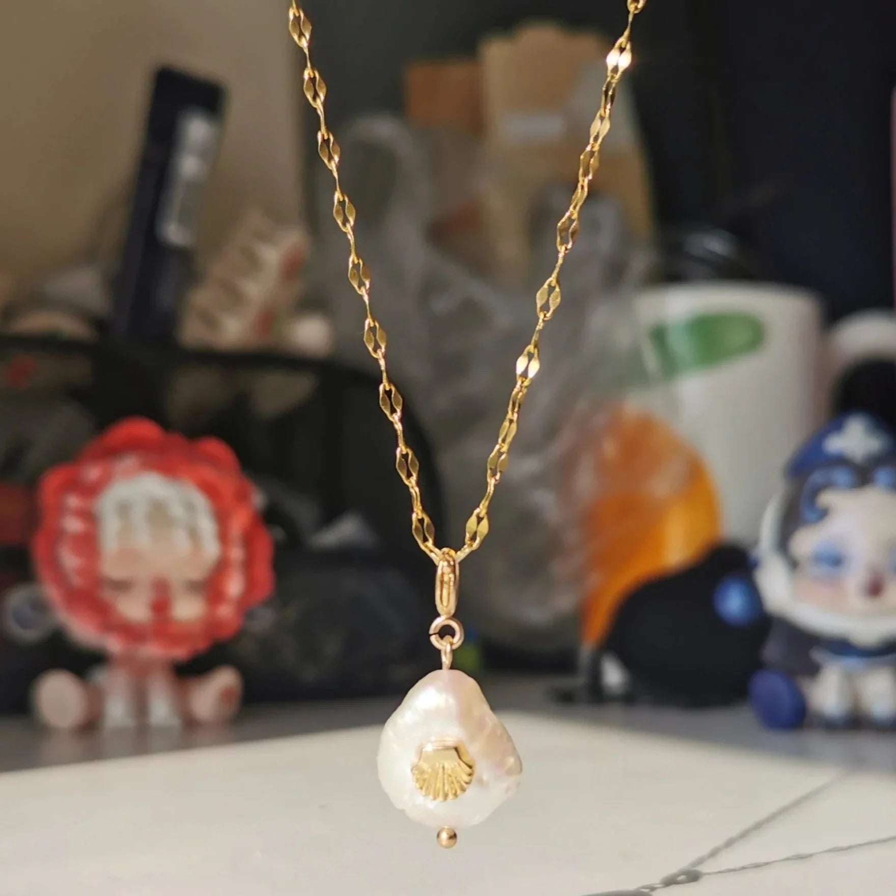 - Złota muszelka umieszczona w centralnej części kompozycji