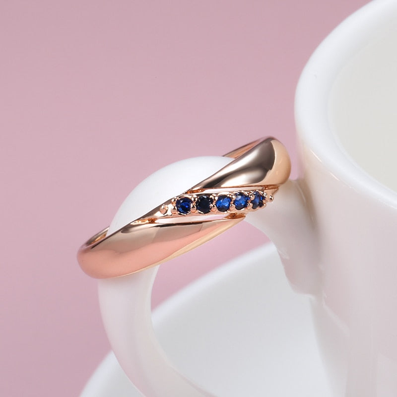 - Pierścionek ozdobiony niebieskimi cyrkoniami