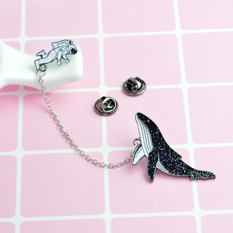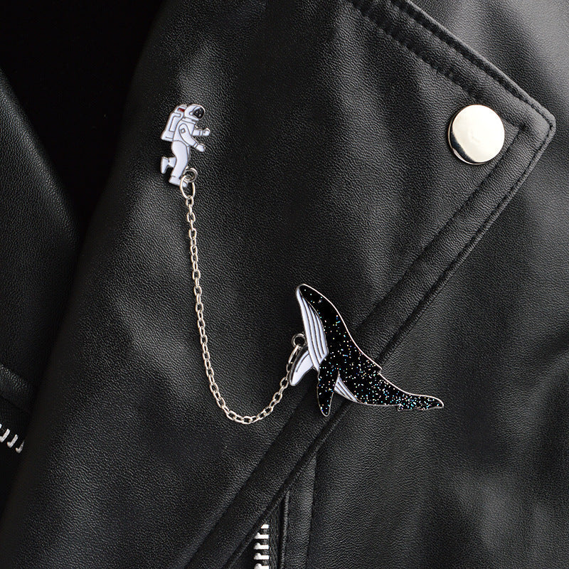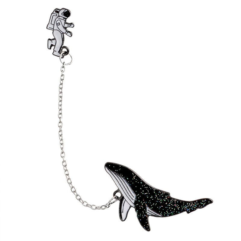Przypinka z łańcuszkiem - wieloryb i astronauta