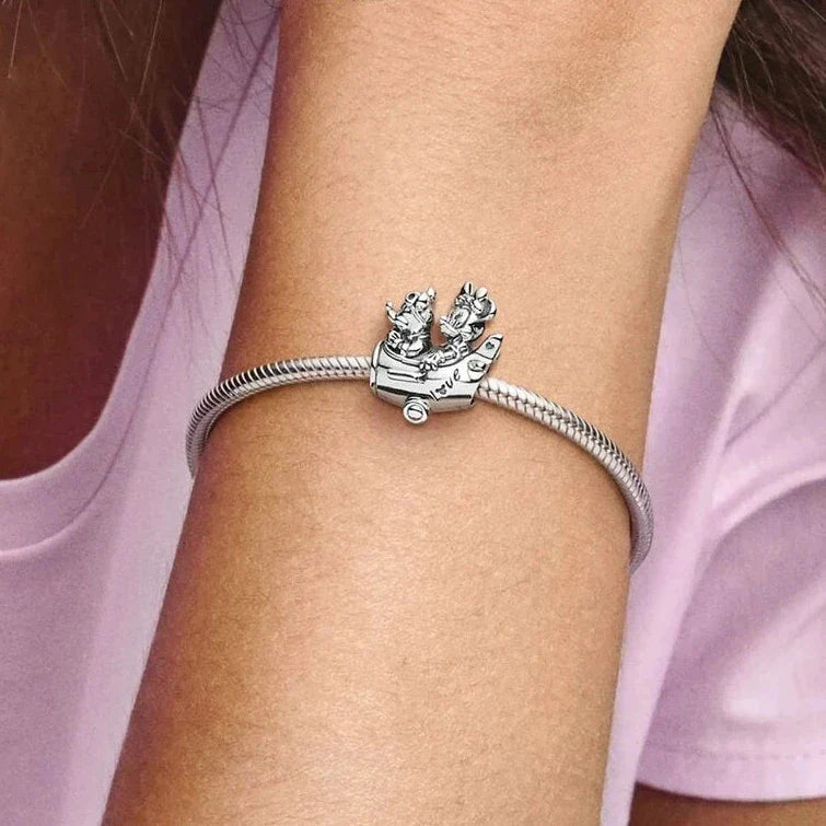 Modułowa zawieszka "Samolot z myszkami" to niezwykły dodatek, czerpiący inspirację z postaci znanej bajki. Urokliwy design, przedstawiający myszki w samolocie, przyciąga wzrok i nadaje biżuterii unikalny styl. Łącz ją z innymi zawieszkami, aby stworzyć własną, niepowtarzalną opowieść na bransoletce.