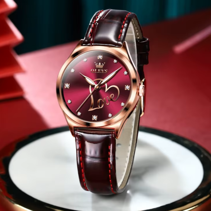 Wprowadź odrobinę romantyzmu do swojej garderoby dzięki damskiemu zegarkowi „Love” od Molie. Efektowna, bordowa tarcza zdobiona napisem „Love” oraz subtelnymi kryształkami nadaje mu wyjątkowy i elegancki charakter. Zegarek wyposażony jest w niezawodny mechanizm kwarcowy oraz skórzany pasek, który zapewnia wygodę noszenia i stylowy akcent. To doskonały wybór na prezent lub jako wyjątkowy dodatek na wieczorne wyjścia.