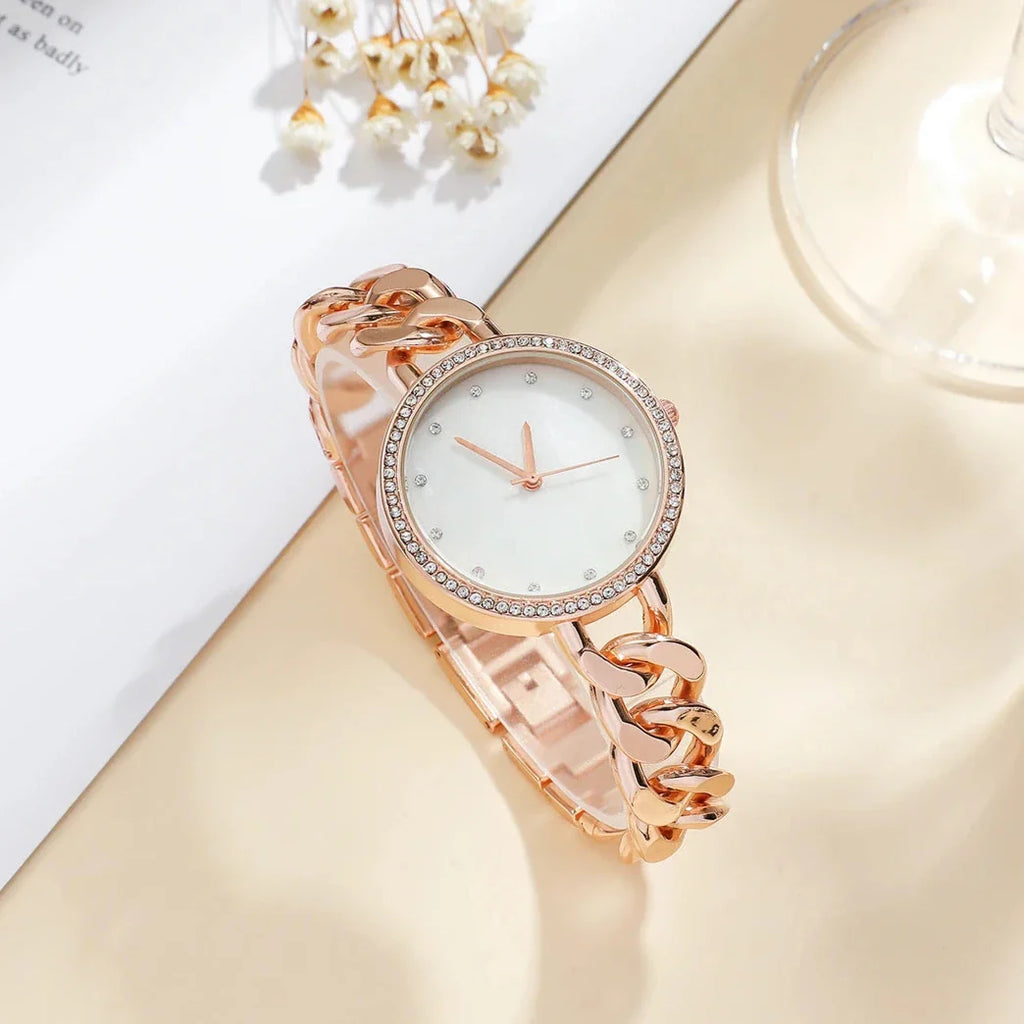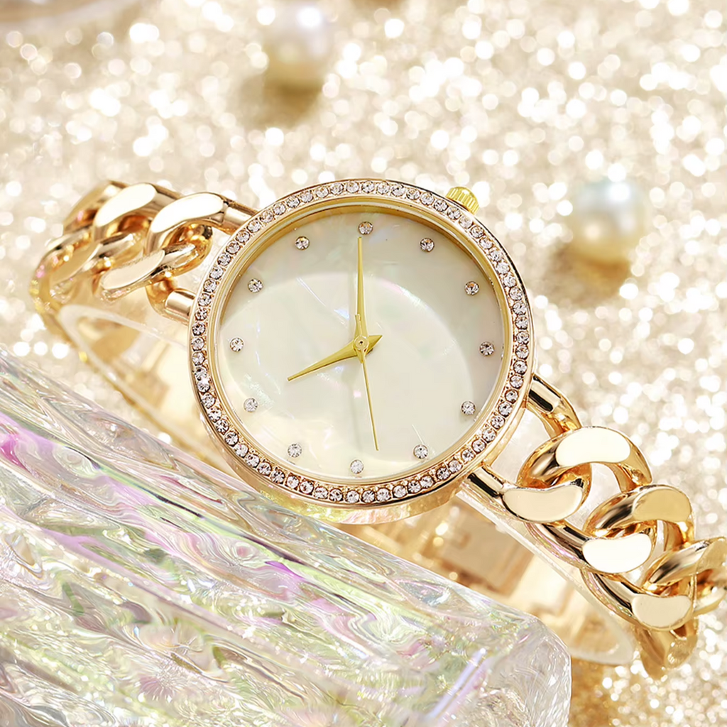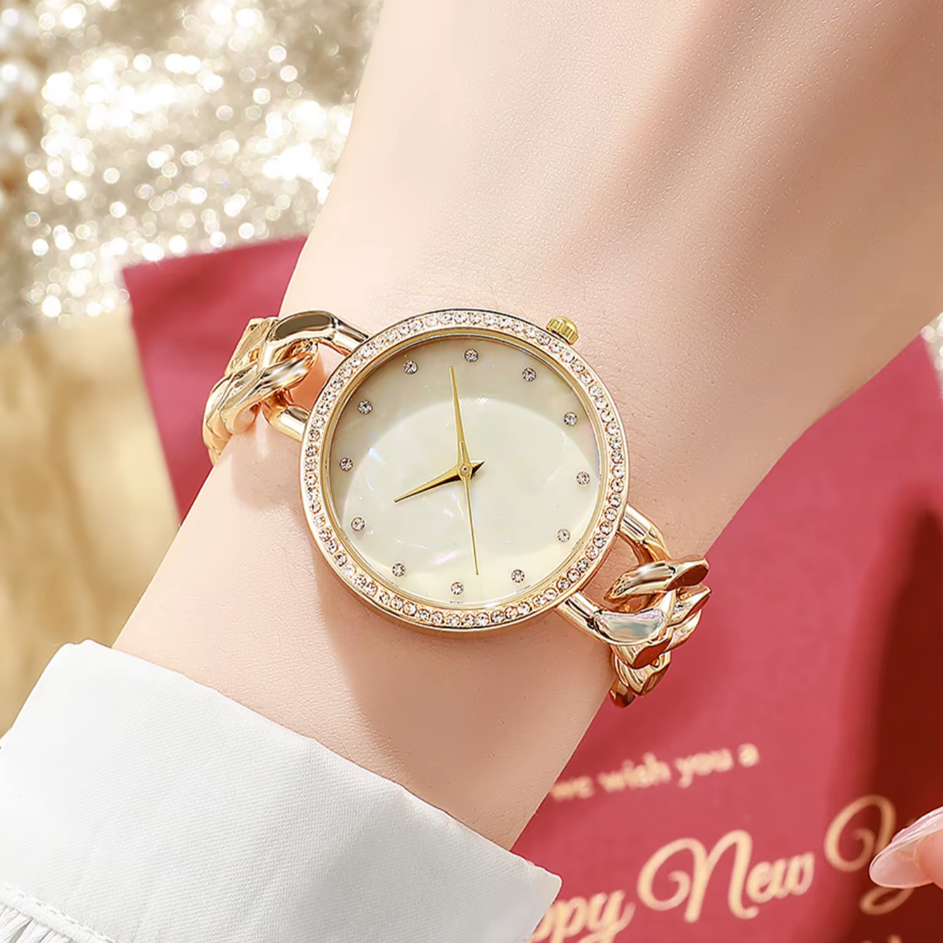 Stylowy zegarek na łańcuszku z efektowną tarczą ozdobioną diamentami to doskonały wybór dla kobiet, które cenią sobie elegancję i wyszukany styl. Wyposażony w precyzyjny mechanizm kwarcowy, łączy w sobie estetykę z funkcjonalnością. Dostępny w trzech atrakcyjnych kolorach, doskonale uzupełni każdą kreację.